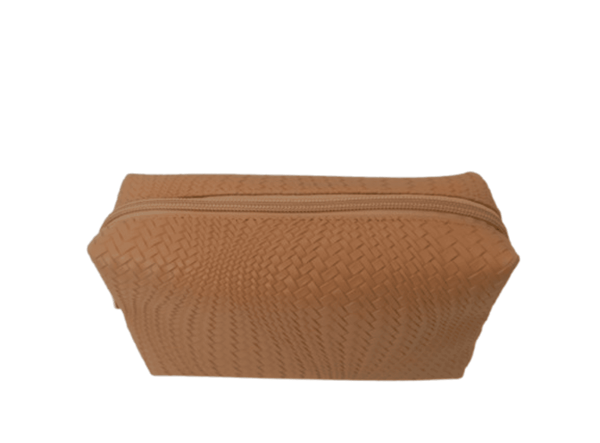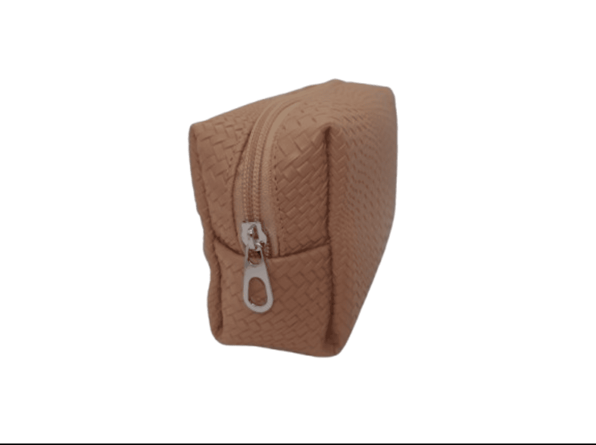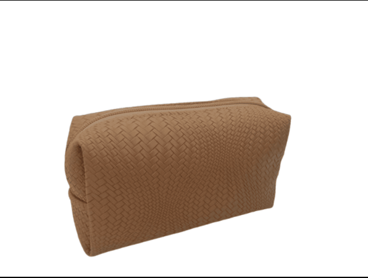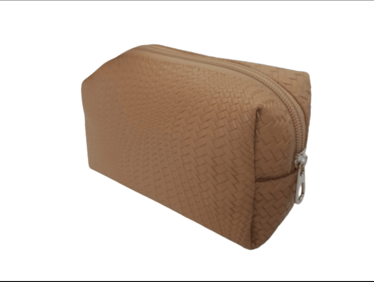 Organiza tus esenciales de belleza con estilo y practicidad. Nuestra cosmetiquera en tono beige presenta un elegante acabado texturizado tipo tejido que aporta un look moderno y sofisticado, ideal para complementar cualquier bolso o maleta.